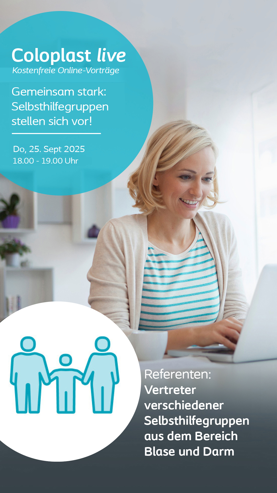 Am Donnerstag, den 25. September 2025, lädt Coloplast von 18:00 bis 19:00 Uhr zu einem besonderen Online-Webinar ein. Das Thema diesmal: Selbsthilfe – von Betroffenen für Betroffene. Und wir von der Stoma-Welt sind mit dabei!